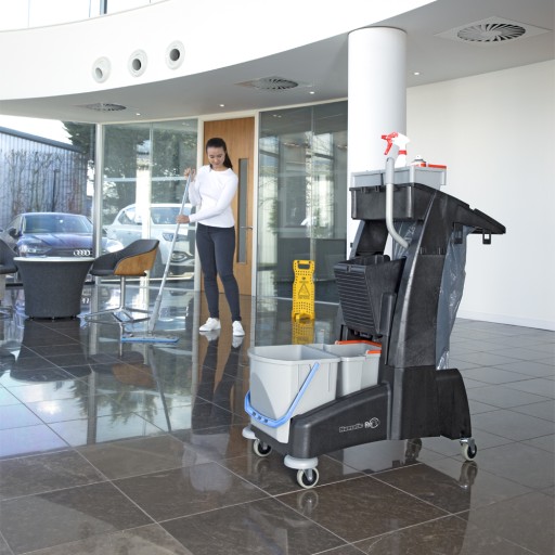 - Twee emmers en verticale mop-pers: Voor een efficiënt mopsysteem in compacte ruimtes.