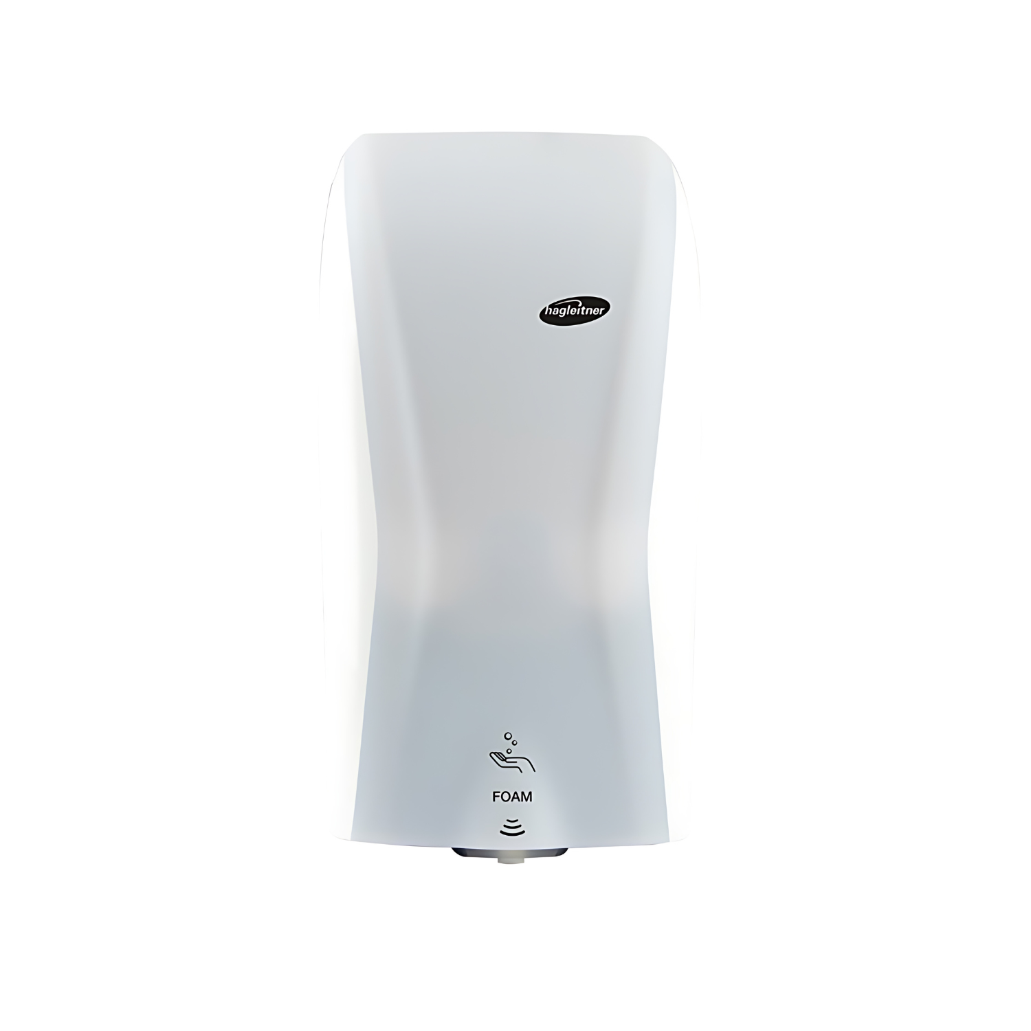 Innovatieve zwarte touchless schuimzeepdispenser met reserve tank, eenvoudig bijvullen dankzij vacuumBAG-gids, instelbare dosering via Hagleitner360-App en elektronische vulpeilindicator.